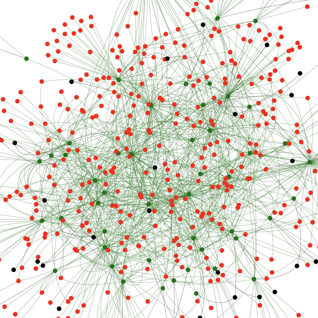 Network 1: relation of Authors (black) to their Essays (green);